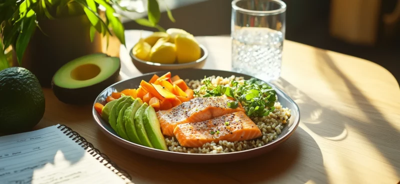 Вам нужна низкокалорийная здоровая еда — фрукты, овощи, цельнозерновые углеводы, нежирные источники белка (бобовые, рыба), нежирные молочные продукты (творог, сметана и др.) и ненасыщенные жиры (кунжутное масло, оливковое масло и др.).